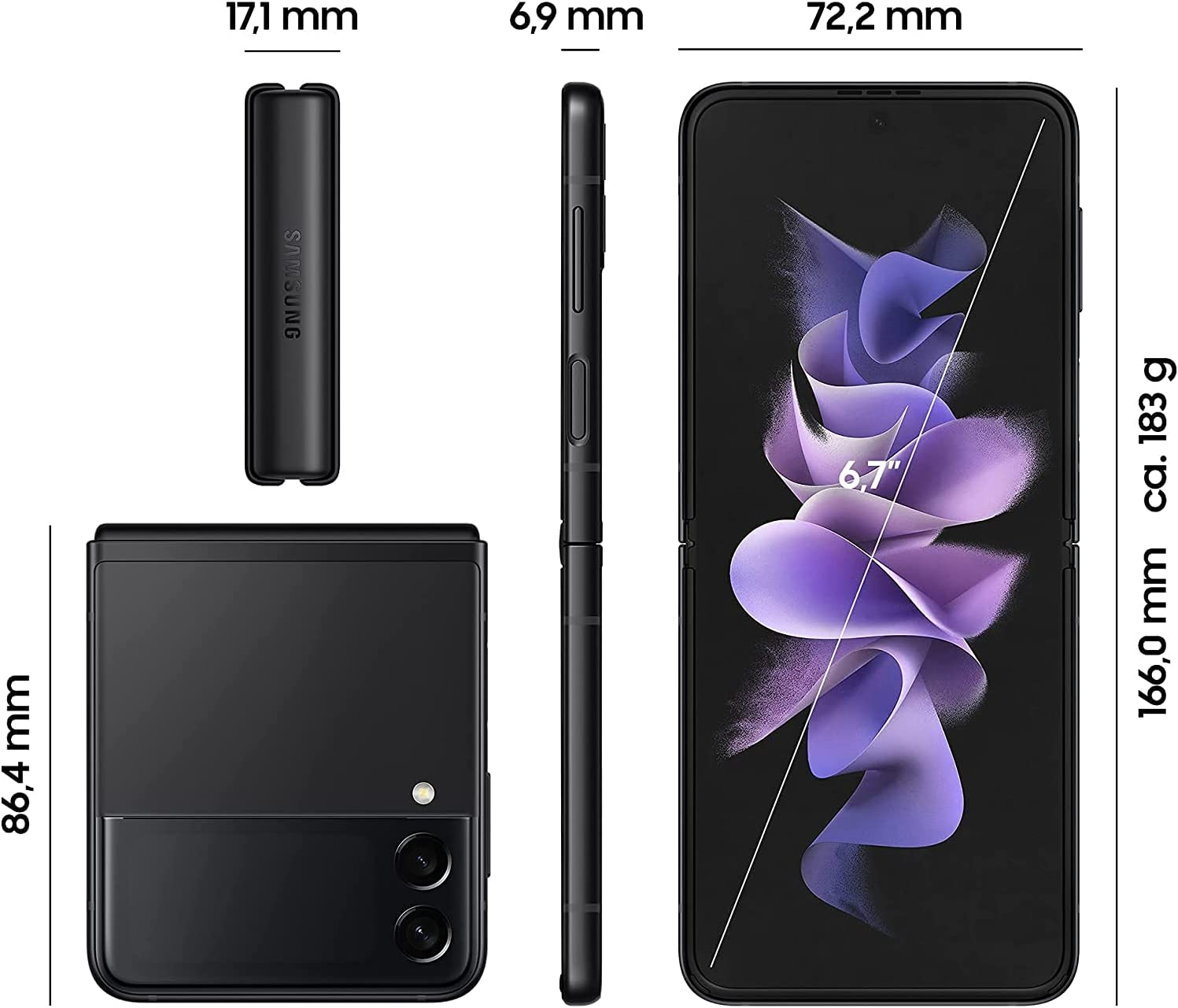 Samsung Galaxy Z Flip3 5G, 128 GB, 36 Month Warranty, Phantom Black